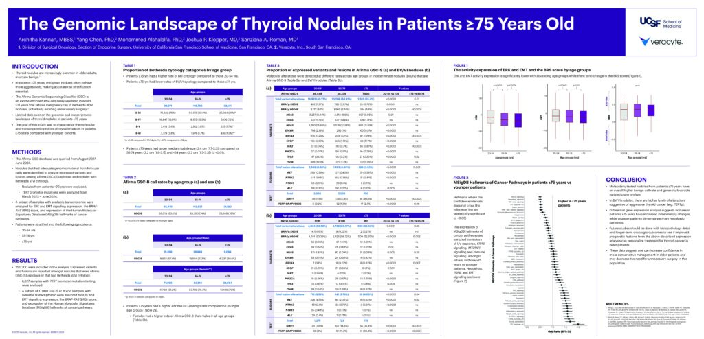 - Limited data exist on the genomic and transcriptomic landscape of thyroid nodules in patients “>=”75 years.